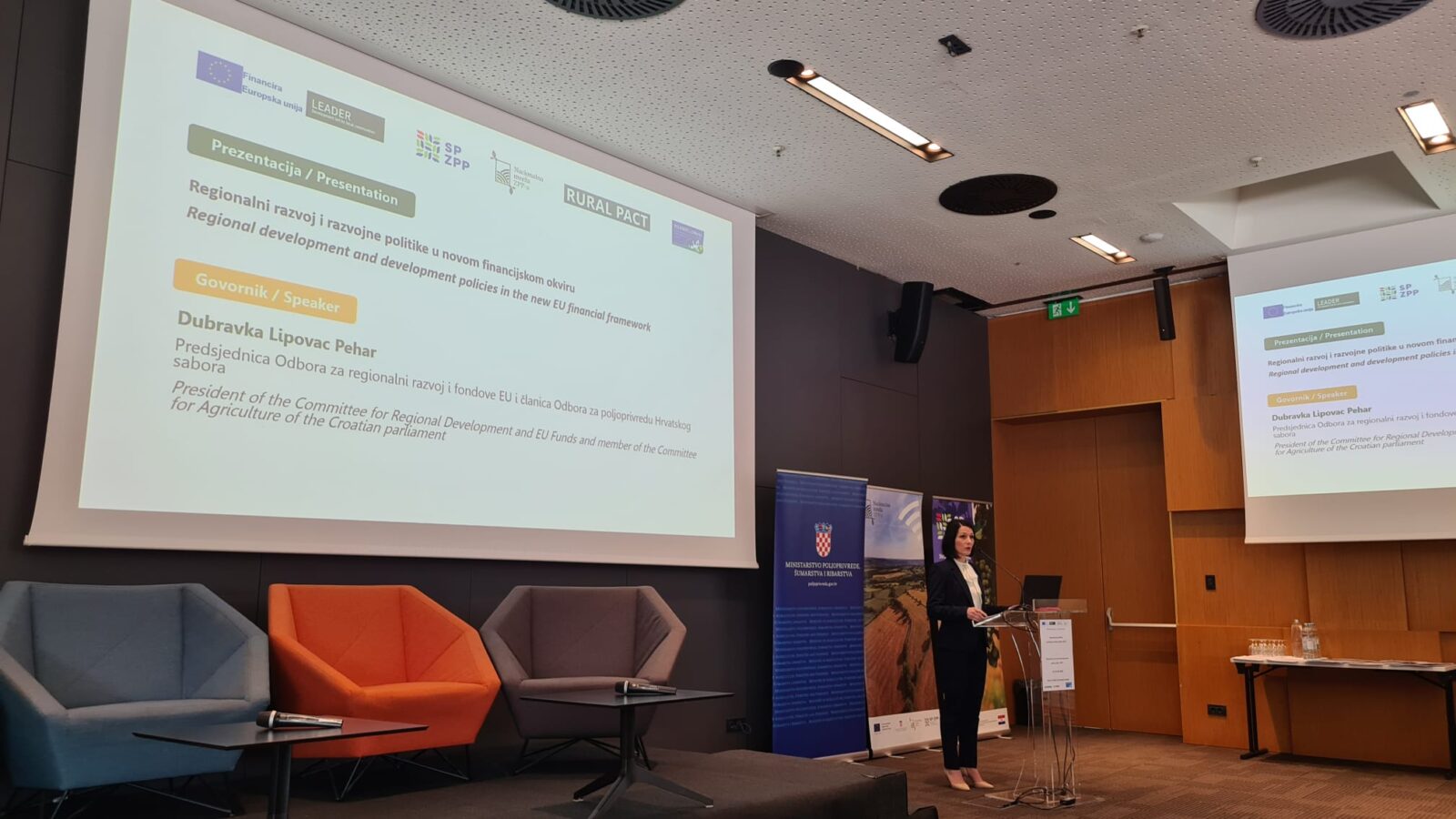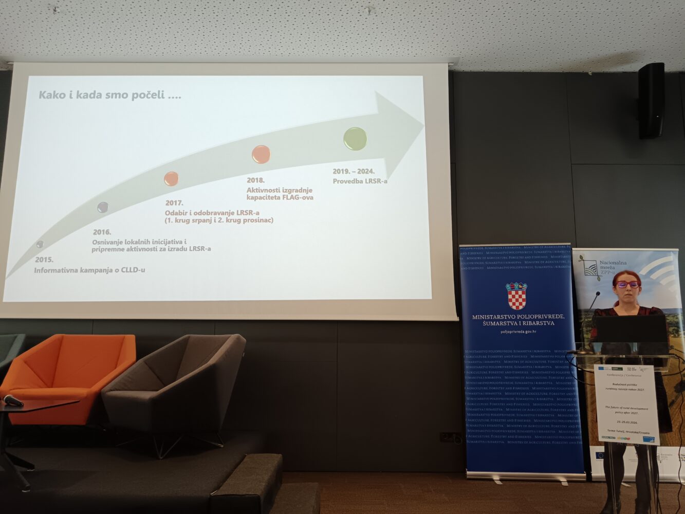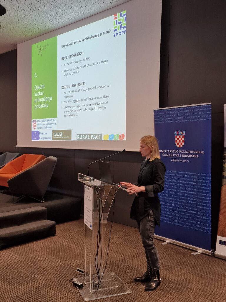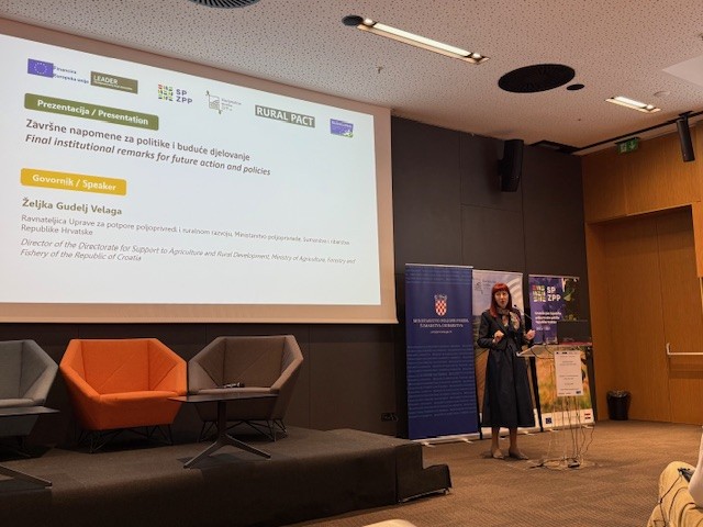 U okviru završnih institucionalnih napomena, gđa Željka Gudelj-Velaga, ravnateljica Uprave za potpore poljoprivredi i ruralnom razvoju Ministarstva poljoprivrede, šumarstva i ribarstva. Posebno je naglasila važnost transformacije ruralnih područja i osiguravanja uvjeta za ostanak mladih uz konkretnu podršku politika vezanih uz ruralni razvoj. Osvrnula se i na vrijednu ulogu LAG-ova koji najbolje prepoznaju lokalne potrebe i izazove i već dugi niz godina suradnjom s kreatorima politika čine svoje lokalne sredine vitalnijima, življima, povezanijima i poželjnijima za život. Naglasila je ovom prilikom kako novo vrijeme pred nama traži i nove modele suradnje te ovoga puta imamo jedan zajednički cilj – dokazati da je LEADER vrijedan alat ruralnog razvoja koji treba dalje razvijati. Zaključila je kako je ova konferencija utrla dobar put za daljnju suradnju te se nada budućim partnerstvima sa svim dionicima LEADER-a.
