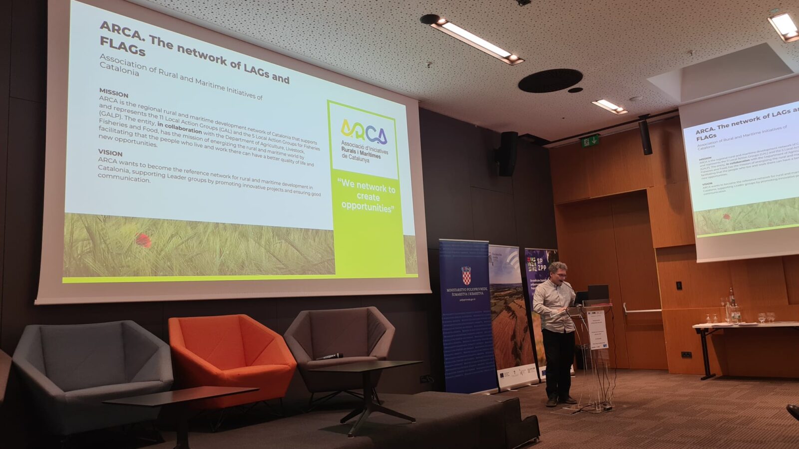 Središnji dio ovog događanja, 24. ožujka 2026. godine započeo je svečanim otvorenjem na najvišoj razini, a u okviru ovoga dijela programa sudionicima se obratio i predstavnik Uprave za potpore poljoprivredi i ruralnom razvoju Ministarstva poljoprivrede, šumarstva i ribarstva, dr.sc. Silvio Šimon, načelnik Sektora za provedbu mjera i intervencija ruralnog razvoja. U svojem je obraćanju naglasio važnost i ulogu Tematske radne grupe “LEADER/CLLD”, odnosno vrijedan doprinos ove grupe usmjeravanju politika i provedbi Strateškog plana ZPP-a, ali i pripremi za novo programsko razdoblje. Istaknuo je i značajnu ulogu LAG-ova u svojim lokalnim zajednicama u kojoj vidi sponu između nacionalnih i lokalnih politika i priliku za rast i prosperitet.