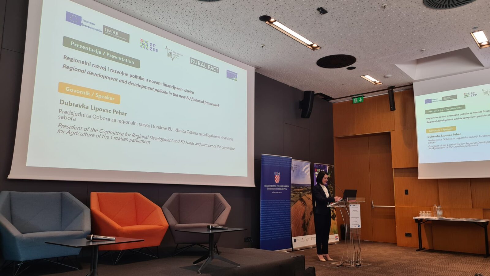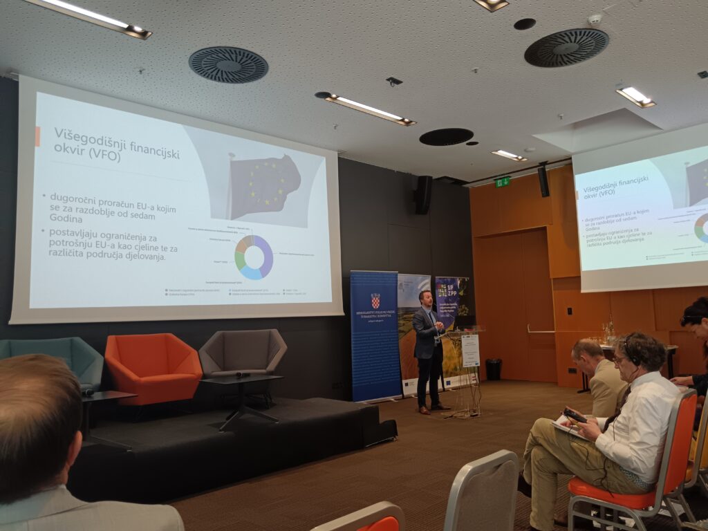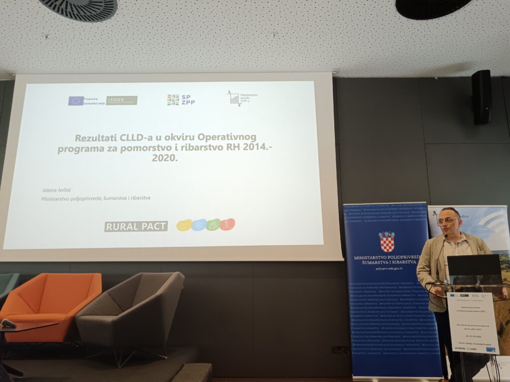 Drugi dio dana sudionicima je donio prikaz novog VFO-a i Zajedničke poljoprivredne politike s posebnim osvrtom na generacijsku obnovu putem izlaganja dr.sc. Silvia Šimona, predstavnika Ministarstva poljoprivrede, šumarstva i ribarstva. Dr.sc. Jakša Puljiz, ravnatelj Instituta za razvoj i međunarodne odnose (IRMO) podijelio je sa sudionicima hrvatska iskustva s teritorijalnim alatima EU te iznio pouke za budućnost. Uslijedilo je izlaganje prof.dr.sc. Aleksandra Lukića s Prirodoslovno-matematičkog fakulteta Sveučilišta u Zagrebu, u čijem je fokusu bilo pravo na ostanak i razvojni pokazatelji pojedinih tipova ruralnih područja u Hrvatskoj. Predstavnik Nacionalne zaklade za razvoj civilnog društva, g. Branko Logarić, , prisutnima je predstavio doprinos Nacionalne zaklade ruralnom razvoju kroz programe podrške društvenim inovacijama. Dio posvećen politici ruralnog razvoja u Hrvatskoj danas i nakon 2027. završio je panel raspravom izlagača kojima se pridružio i g. Vedran Kršek, predstavnik Ministarstva regionalnog razvoja i fondova EU.